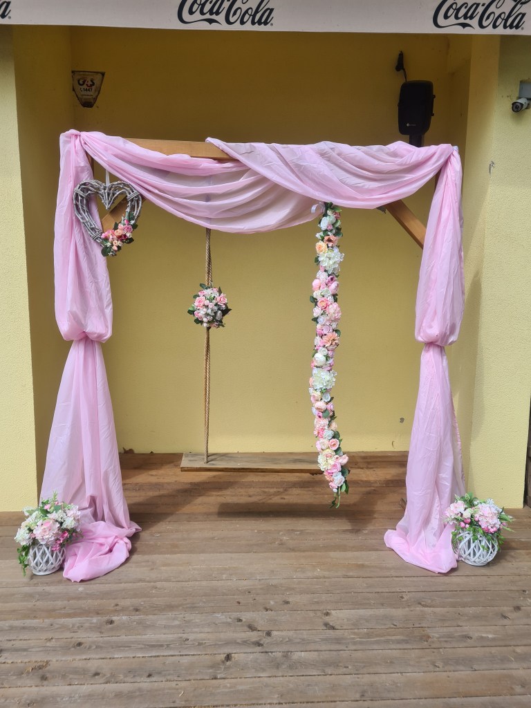 Dekorációs elemeink darabonként is bérelhetőek, ezeket mi az esküvő előtti napon a helyszínre szállítjuk és az adott napon felállítjuk az elképzeléseiteknek megfelelően.
